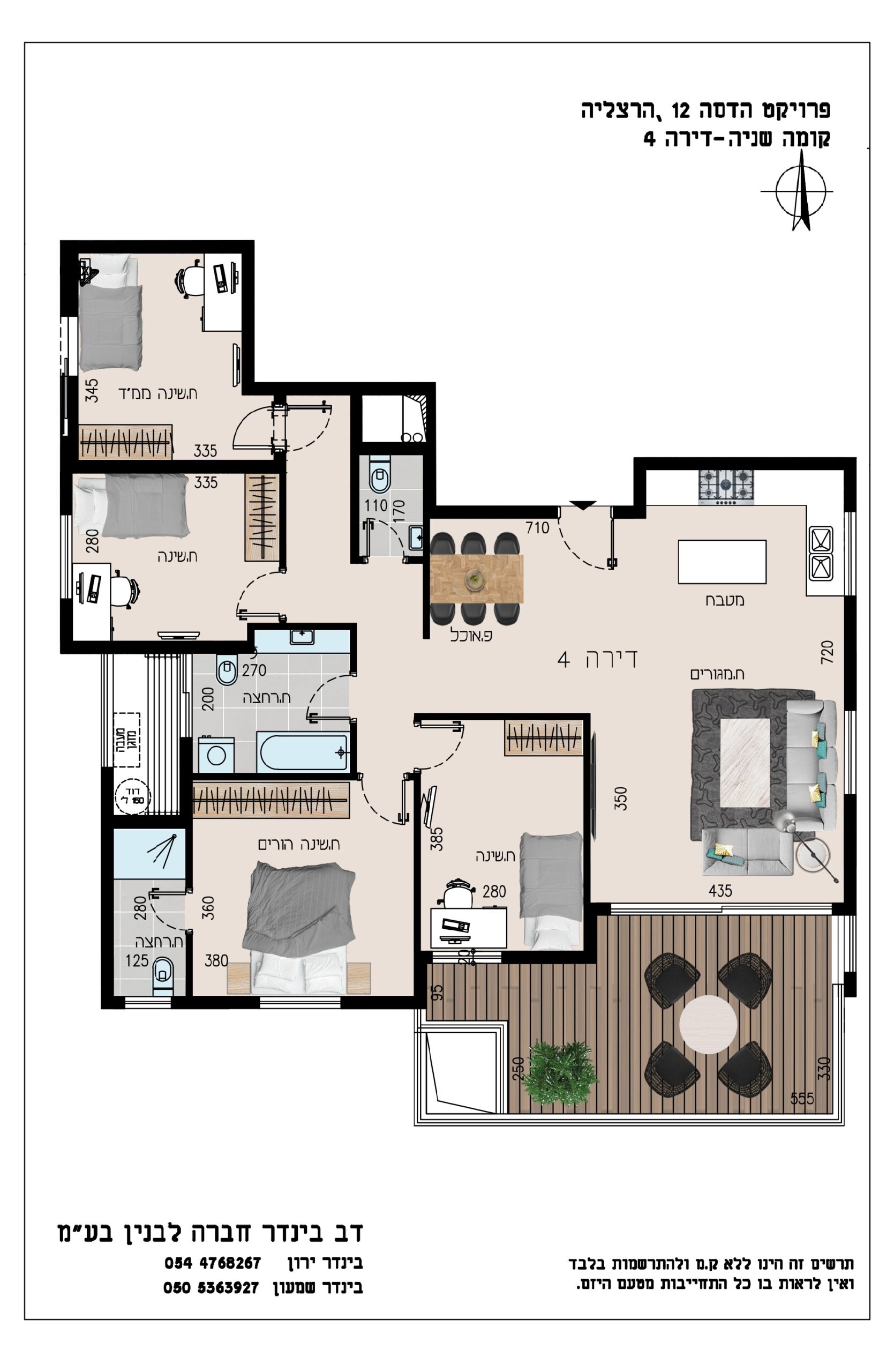 120 מ״ר בנוי + 19 מ״ר מרפסת שמש.